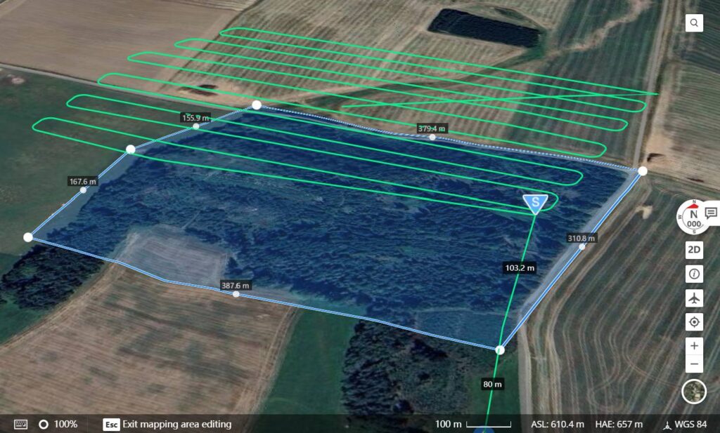 Druhý pokus? To už byla jiná káva. Slunce svítilo naplno, ale teploměr ukazoval nekompromisních -4 °C. Zatímco my jsme na zemi „klepali kosu“, naše DJI Matrice 4T se ukázala jako naprostý profesionál. Celou oblast měla nalétanou a naskenovanou za pouhých 15 minut.